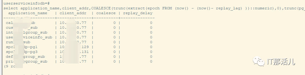 replay_lsn)/1024) replay_delay from pg_stat_replication;