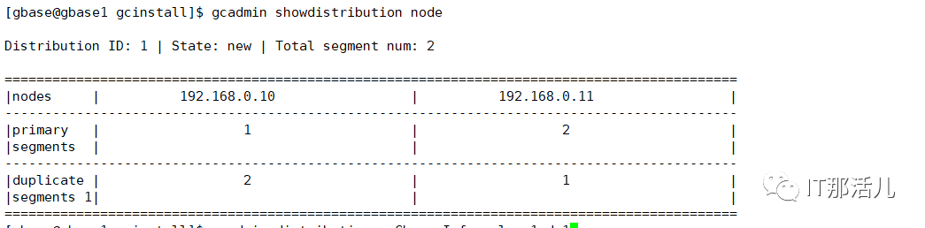 [gbase@gbase1 gcinstall]$ gcadmin distribution gcChangeInfo.xml p 1 d 1