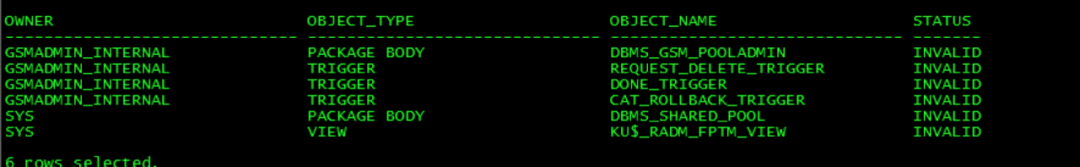 select owner,object_type,object_name, status from dba_objects where status = INVALID order by owner; |